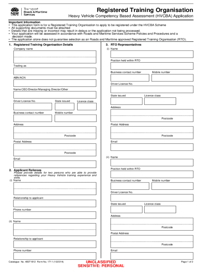 Get the free Registered Training Organisation - Heavy Vehicle Competency Based Assessment Applica...
