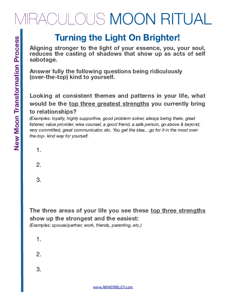 New Moon Transformation ProcessMIRACULOUS MOON RITUAL Turning the Light On Brighter! Aligning stronger to the light of your essence, you, your soul, reduces the casting of shadows that show up as