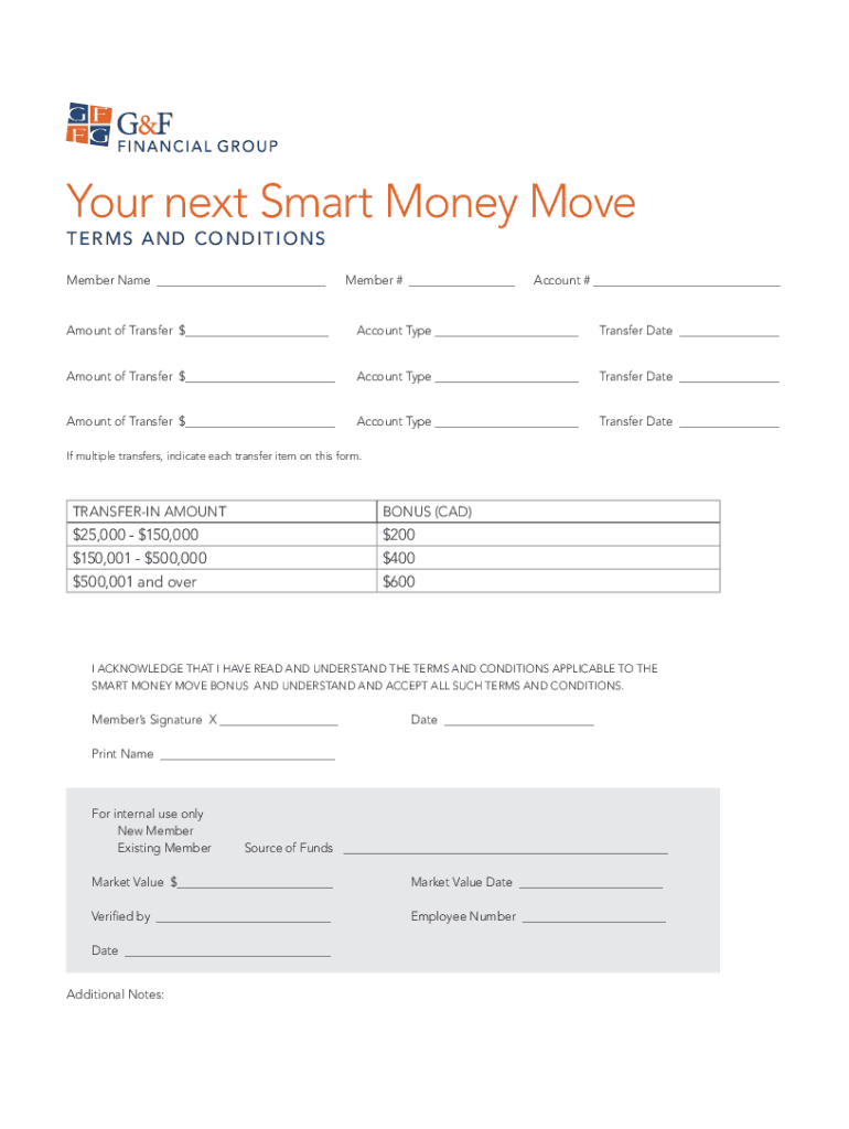 Your next Smart Money Move TERM S AND C O N IT IO NS Member Name Member # Account # Amount of Transfer $ Account Type Transfer Date Amount of Transfer $ Account Type Transfer Date Amount of Transfer