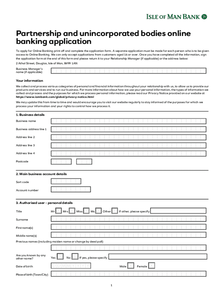 Get the free Partnership and unincorporated bodies online banking applications