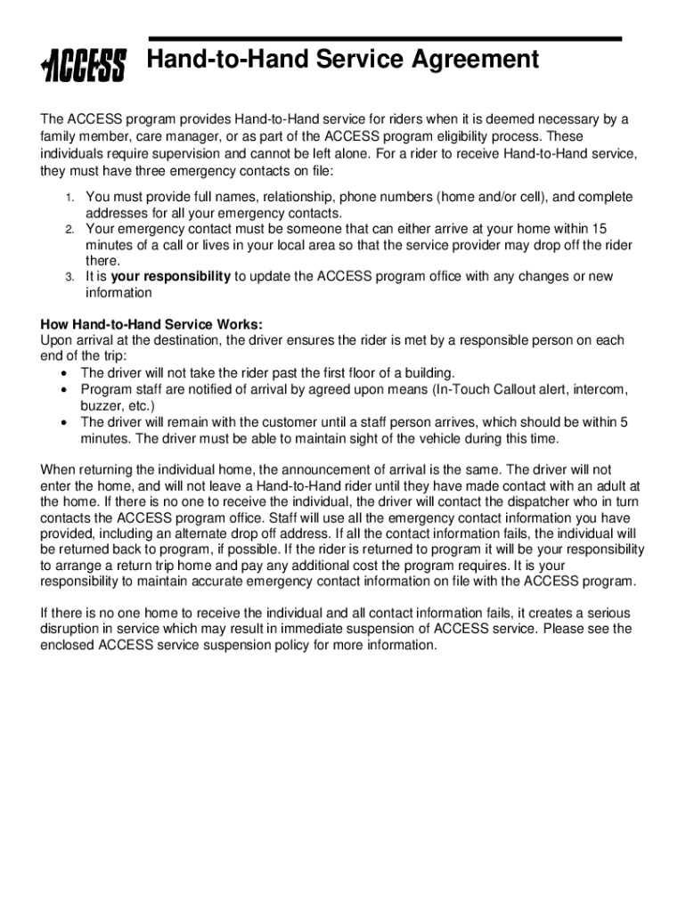 Get the free Hand-to-Hand Service Agreement