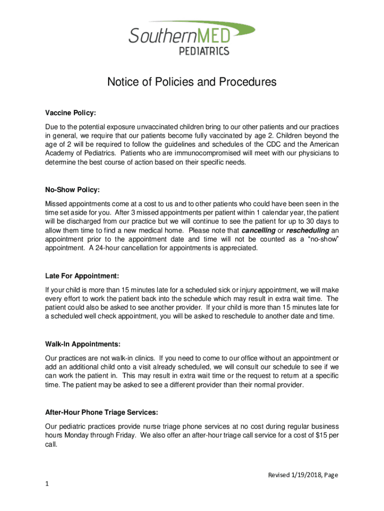 Get the free Notice of Policies and Procedures