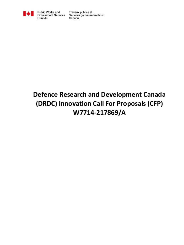 Defense Research and Development Canada (DRC) Innovation Call For Proposals (CFP) W7714217869/Solicitation No. N de l\'invitational. No. N de la modify. W7714217869/A Client Ref. No. N de RF. Du clientW7714217869Buyer