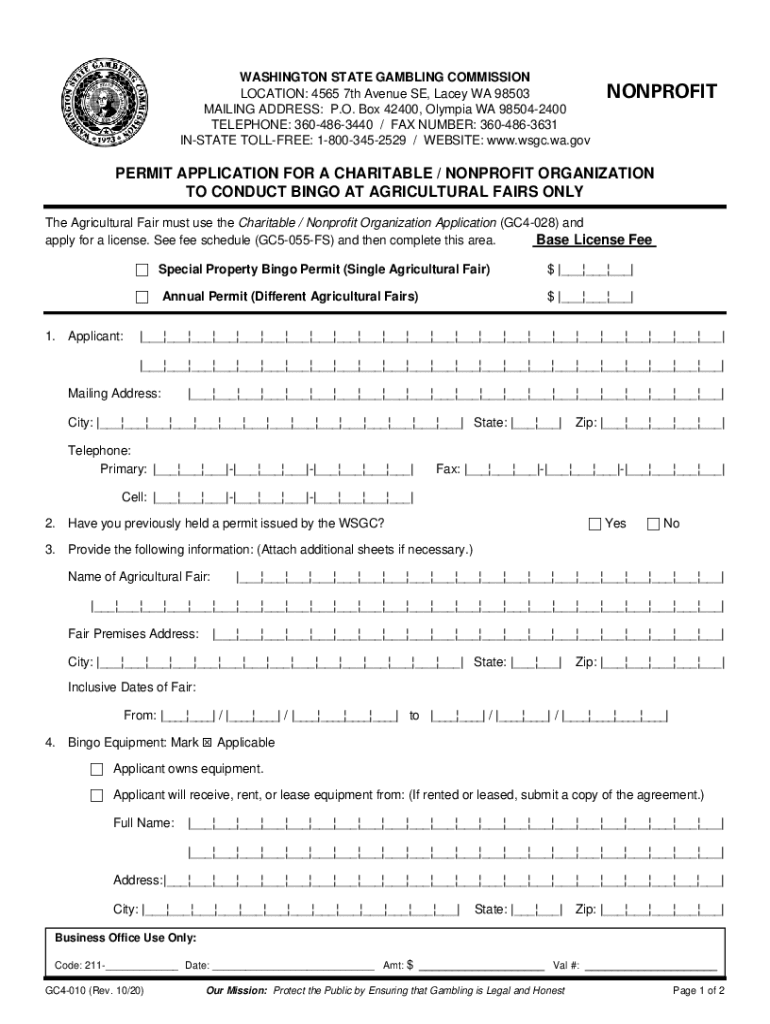 PRONUCLEAR FORMWASHINGTON STATE GAMBLING COMMISSION LOCATION: 4565 7th Avenue SE, Lacey WA 98503 MAILING ADDRESS: P.O. Box 42400, Olympia WA 985042400 TELEPHONE: 3604863440 / FAX NUMBER: 3604863631