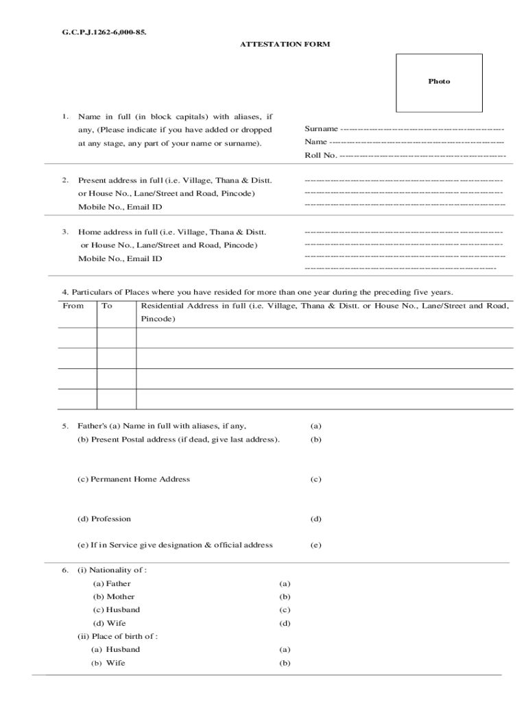 G.C.P.J.12626,00085. ATTESTATION FORMPhoto1. Name in full (in block capitals) with aliases, if any, (Please indicate if you have added or droppedSurname at any stage, any part of your name or surname).