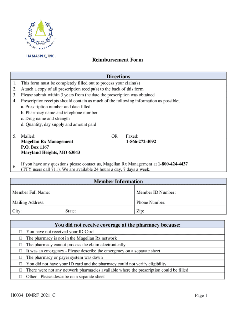Reimbursement Form Directions 1. 2. 3. 4. This form must be completely filled out to process your claim(s) Attach a copy of all prescription receipt(s) to the back of this form Please submit within