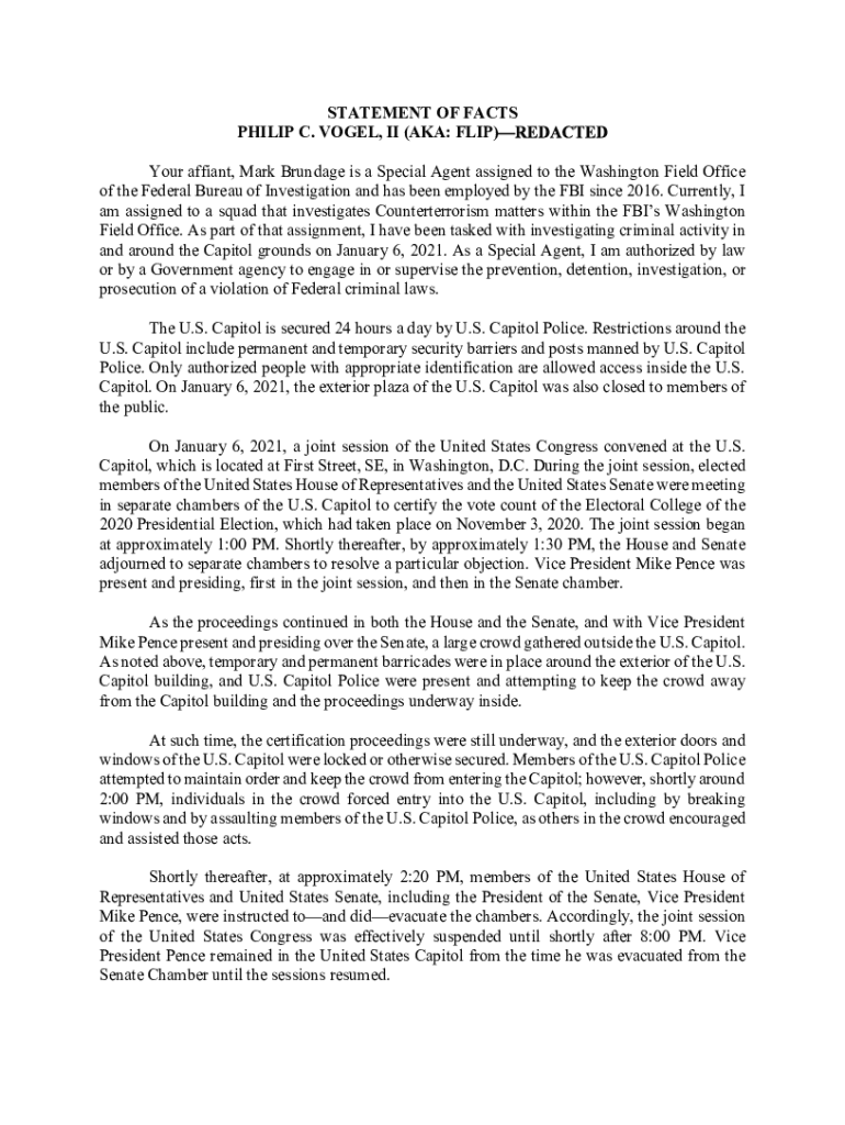 Get the free STATEMENT OF FACTS PHILIP C. VOGEL, II (AKA: FLIP) Your ...