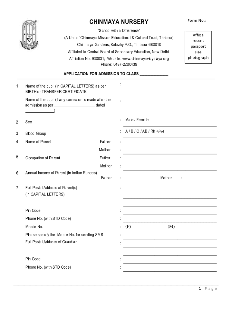 Edit your chinmaya nursery form online