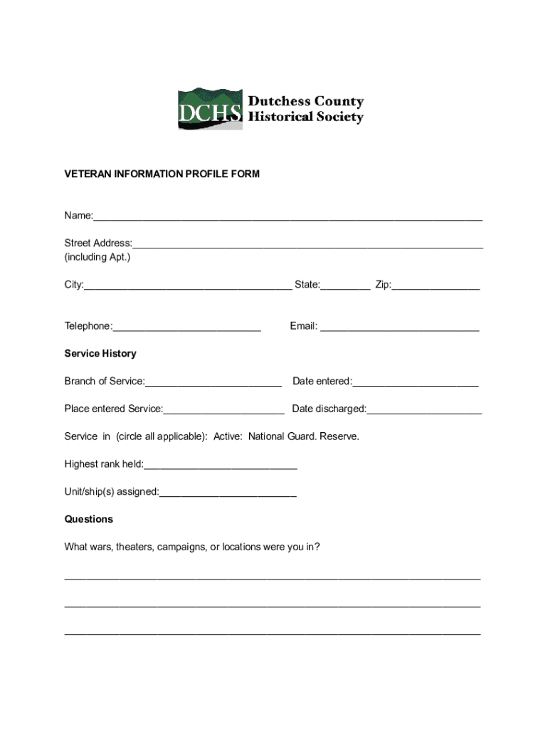 The Veteran Information Profile form may require details about service dates, branch of service, and any disabilities.