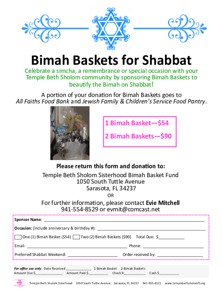 Fill out your bimah baskets for shabbat online with pdfFiller!