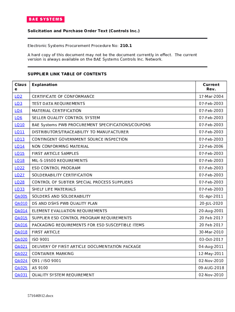 Instructions for the form 210.1 Solicitation and Purchase Order Text (Controls Inc). Solicitation and Purchase Order Text (Controls Inc)