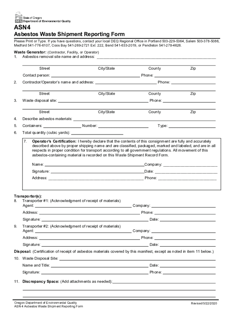 SUPPLEMENTARY INFORMATIONEXHIBIT Asbestos Cement Pipe Forms (10 pages)City of Roseburg) Project No. 20WA05ISSUED FOR BID May 2021Cover SheetAsbestos Program Guidance to Remove Nonfriable Asbestos