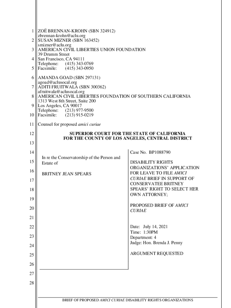 1 ZO BRENNANKROHN (SON 324912) zbrennankrohn@aclu.org 2 SUSAN MINER (SON 163452) smizner@aclu.org 3 AMERICAN CIVIL LIBERTIES UNION FOUNDATION 39 Drum Street 4 San Francisco, CA 94111 Telephone: (415)