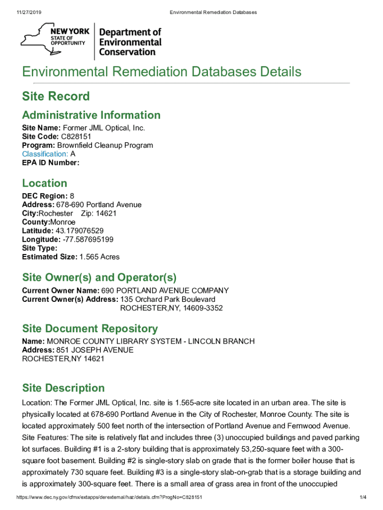 11/27/2019Environmental Remediation DatabasesEnvironmental Remediation Databases Details Site Record Administrative Information Site Name: Former XML Optical, Inc. Site Code: C828151 Program: Brownfield