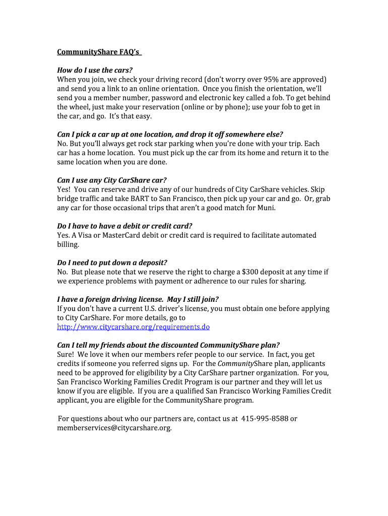 Eligibility Criteria for the City CarShare CommunityShare Application Form