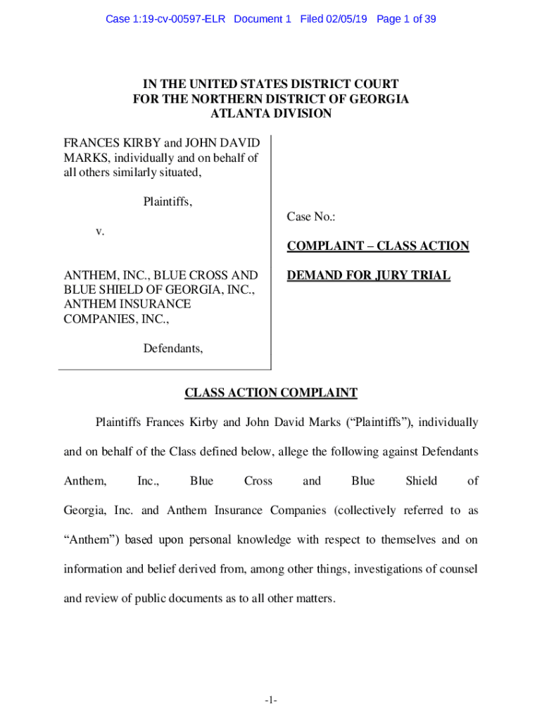 Get the free Kirby et al v. Anthem, Inc. et al - 1