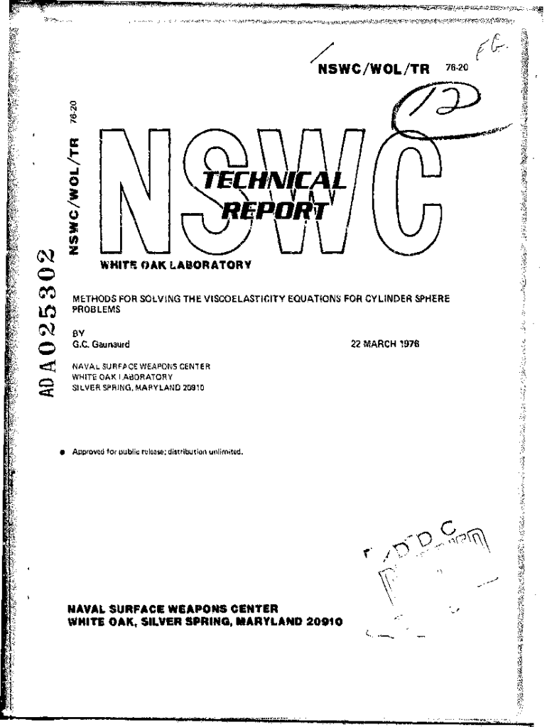 N5WC/WOL/Tripoli WEAK LABORATORY METHODS FOR SOLVING THE VISCOELASTICITY EQUATIONS FOR CYLINDER SHR PROBLEMS BY VG. C. Guard WEAPONS CENTER R WHITE OAK I. Ai3ORATORY SILVER SPRING, MARYLAND 20910glNA