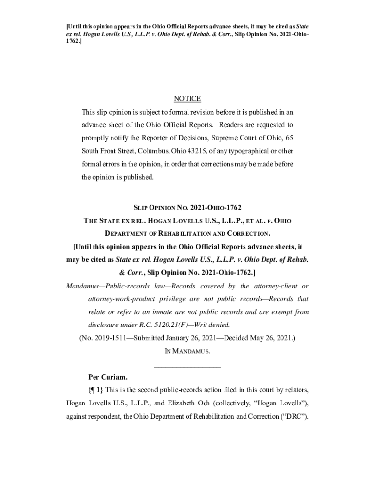 Get the free State ex rel. Hogan Lovells U.S., L.L.P. v. Ohio Dept. of Rehab. & Corr. (Sl...