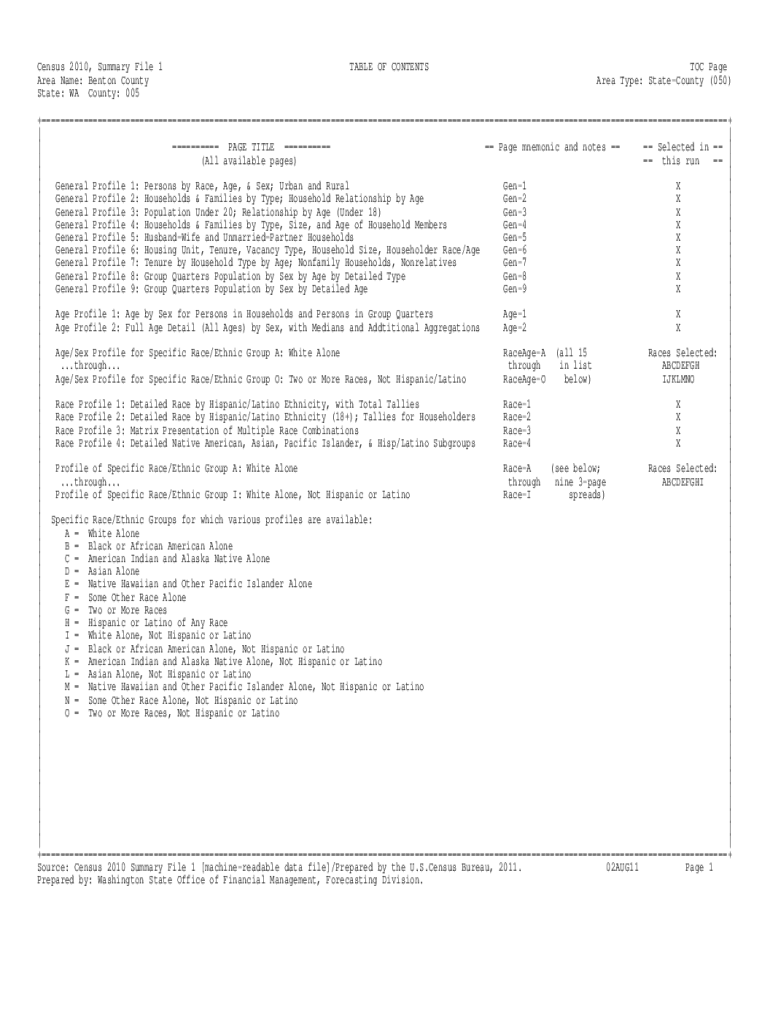 Get the free 2010 Census, Summary File 1 TABLE OF CONTENTS TOC Page