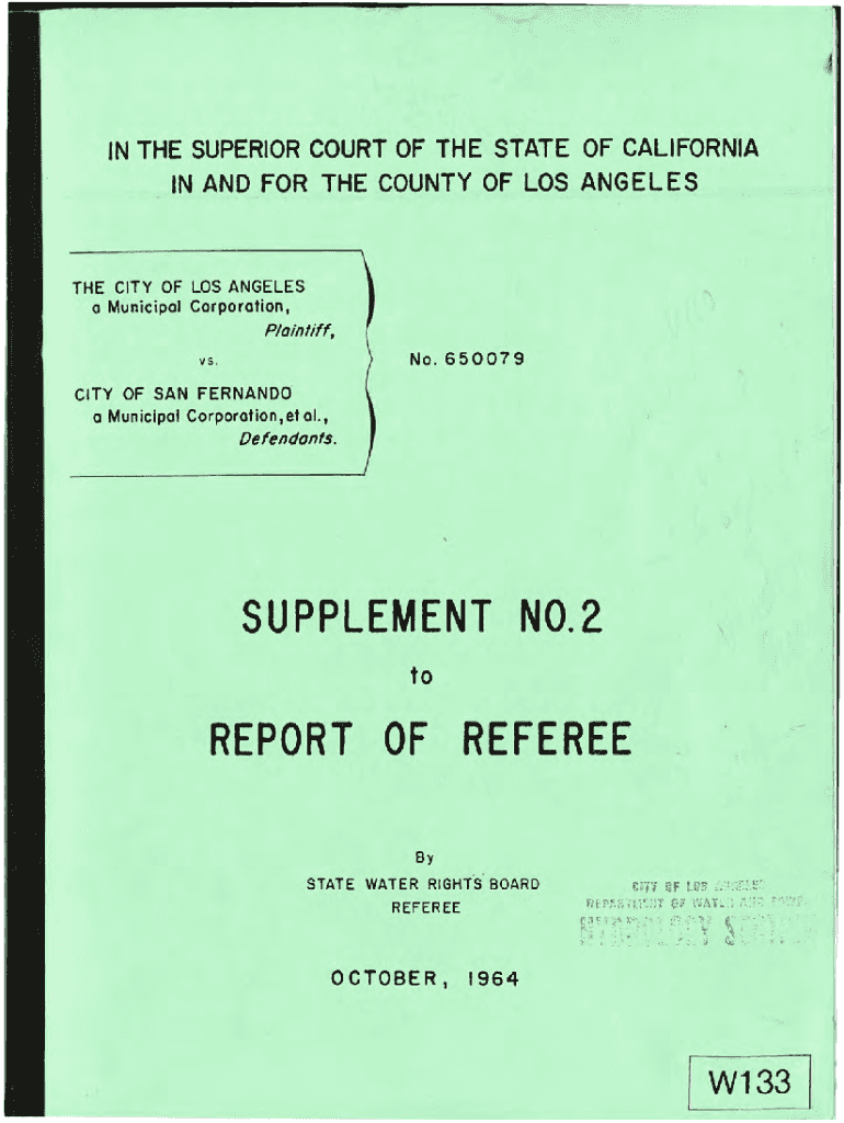 IN THE SUPERIOR COURT OF THE STATE OF CALIFORNIA IN AND FOR THE COUNTY OF LOS ANGELES CITY OF LOS ANGELES a Municipal Corporation Plaintiff, No.650079vs, CITY OF SAN FERNANDO a Municipal Corporation