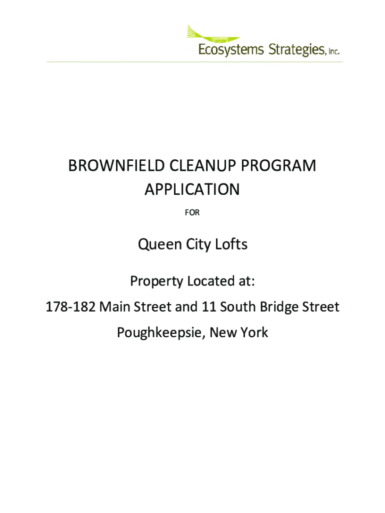 BROWNFIELD CLEANUP PROGRAM APPLICATION FOR Queen City Lofts Property Located at: 178182 Main Street and 11 South Bridge Street Poughkeepsie, New YorkBROWNFIELD CLEANUP PROGRAM (BCP) APPLICATION FORM