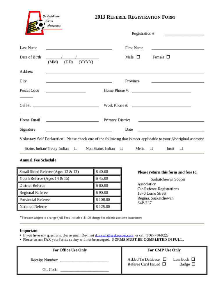 What is 2013 Referee Registration Form?