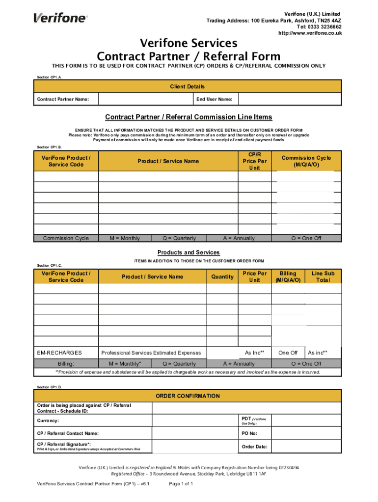 Get the free VeriFone Services Contract Partner Form (CP1) - v6.1.doc