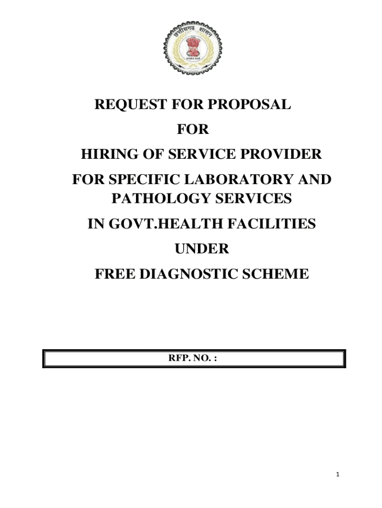 REQUEST FOR PROPOSAL FOR HIRING OF SERVICE PROVIDER FOR SPECIFIC LABORATORY AND PATHOLOGY SERVICES IN GOVT.HEALTH FACILITIES UNDER FREE DIAGNOSTIC SCHEME RFP. NO. 1TABLE OF CONTENTS 1. Notice inviting