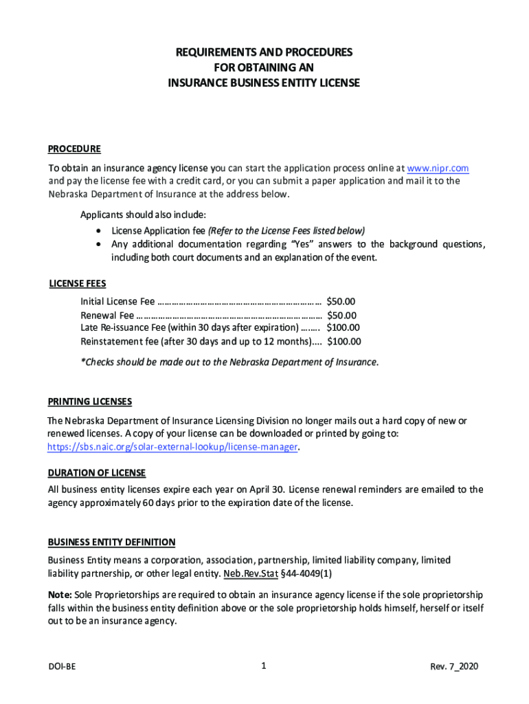 REQUIREMENTS AND PROCEDURES FOR OBTAINING AN INSURANCE BUSINESS ENTITY LICENSEPROCEDURE To obtain an insurance agency license you can start the application process online at www.nipr.com and pay the