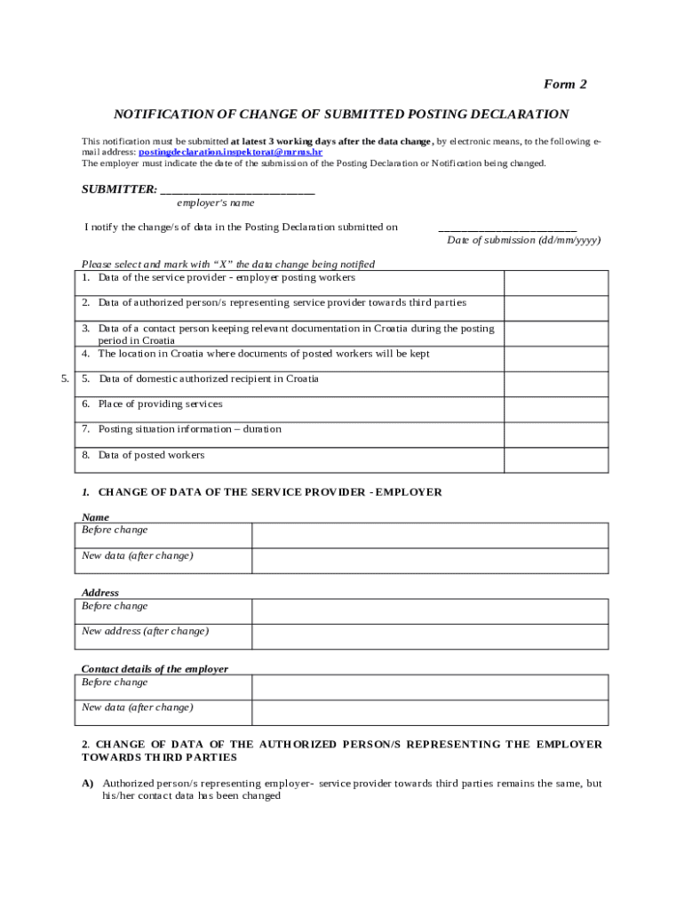NOTIFICATION OF CHANGE OF SUBMITTED POSTING DECLARATION word template: frequently asked questions