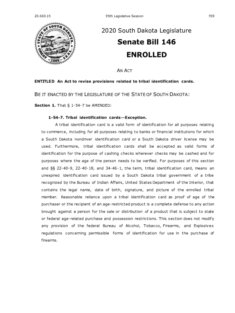 Get the free SDLRC - 2020 Senate Bill 146 - SD Legislature revise provisions related to tribal id...