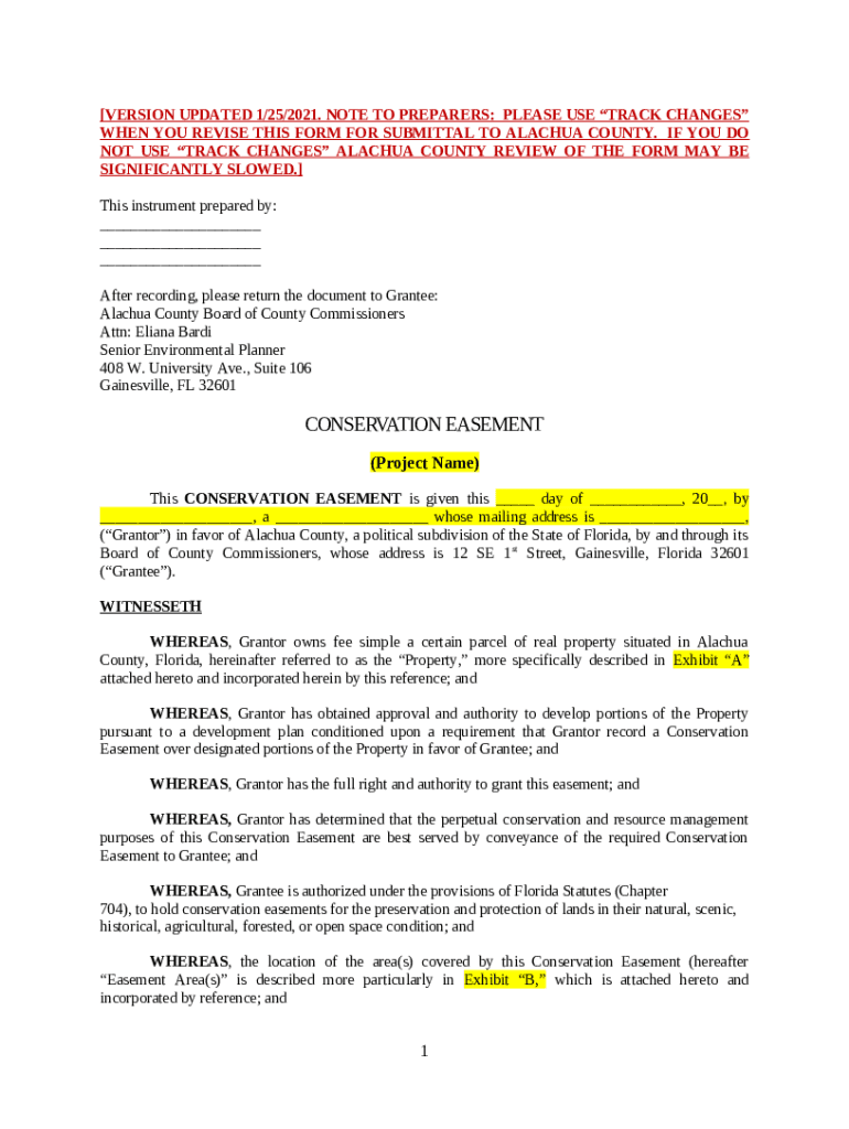 What is NOTE TO PREPARERS:PLEASE USE "TRACK CHANGES" WHEN YOU REVISE THIS FOR SUBMITTAL TO ALACHUA COUNTY Form?