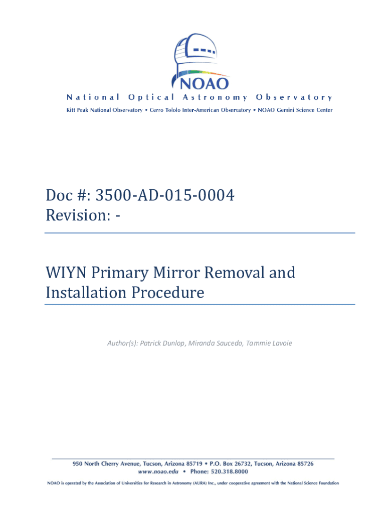 Get, Create, Make and Sign wiyn primary mirror removal