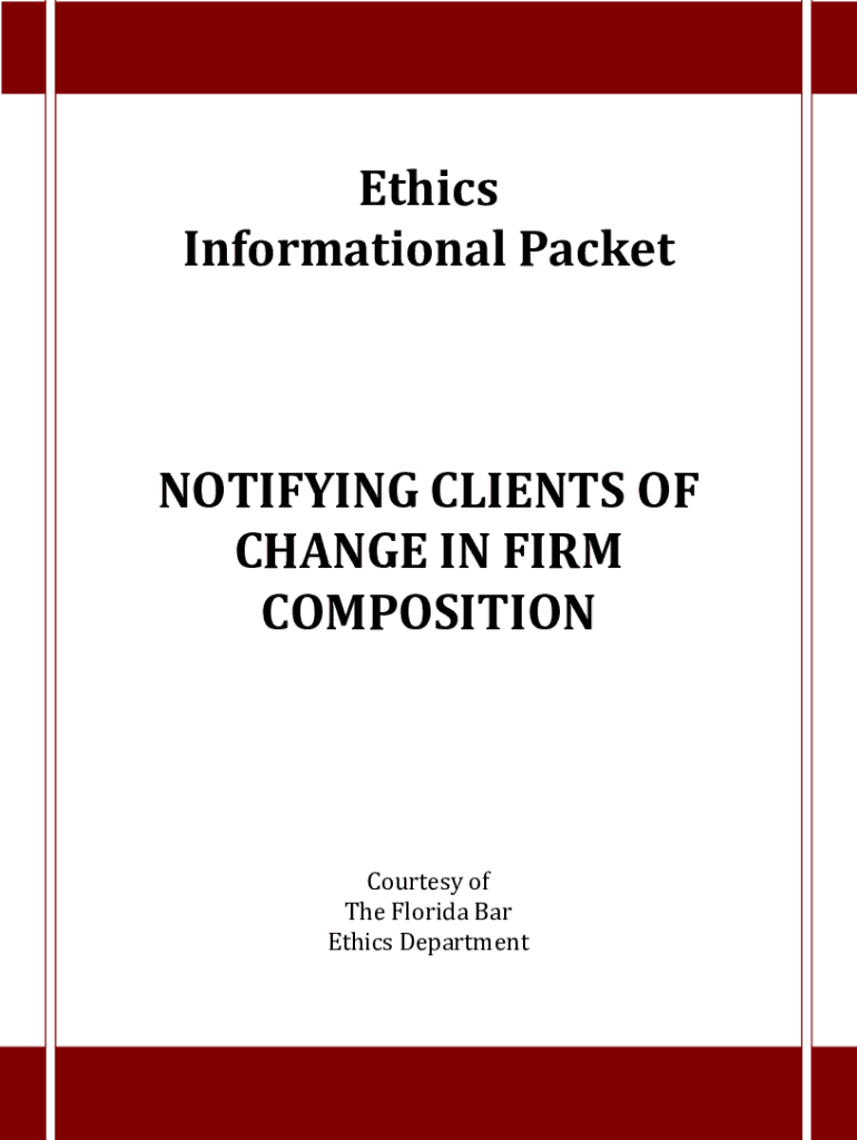 Ethics Informational PacketNOTIFYING CLIENTS OF CHANGE IN FIRM COMPOSITIONCourtesy of The Florida Bar Ethics Departmental OF CONTENTS Document Page #RULE NOTIFYING CLIENTS WHEN LAWYERS LEAVE FIRMS