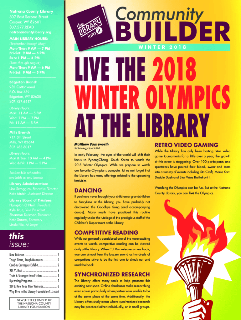 The purpose of the Natrona County Library is to provide free access to educational and recreational materials for the residents of Natrona County.