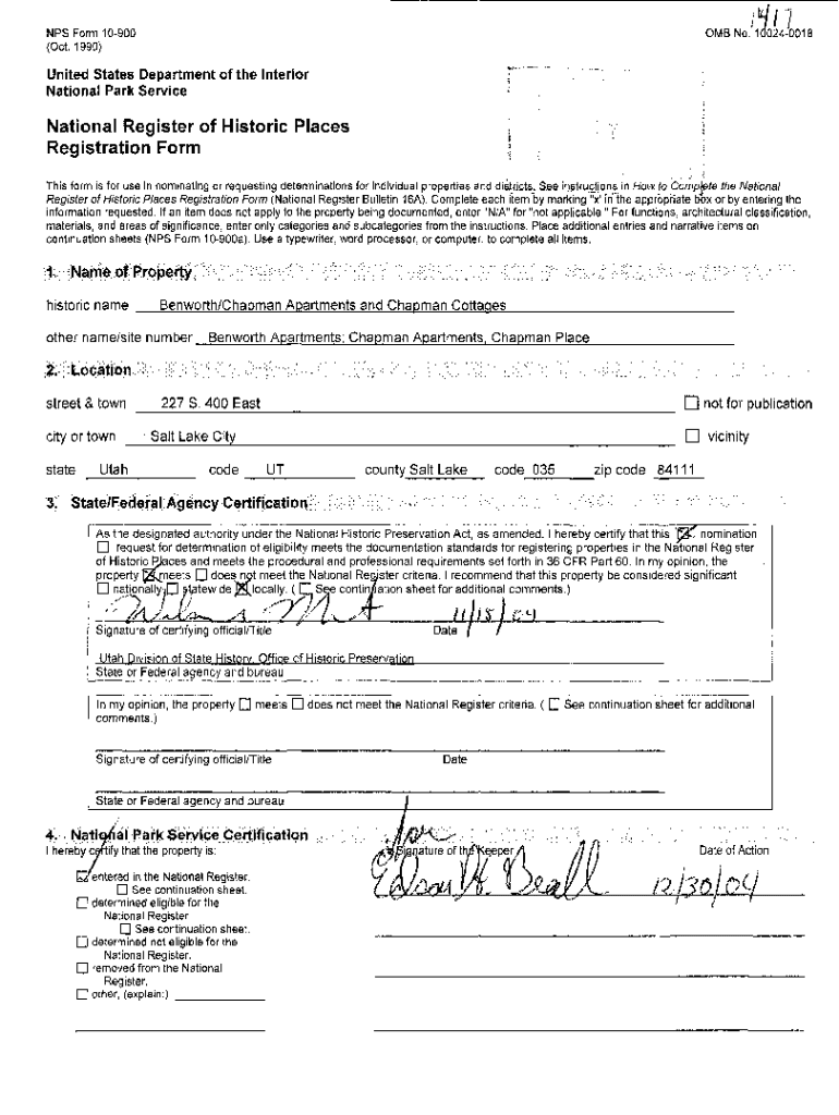 NPS Form 10900 (Oct. 1990)OMB No. 1(50240018United States Department of the Interior National Park Service National Register of Historic Places Registration Form I this form is for use in nominating