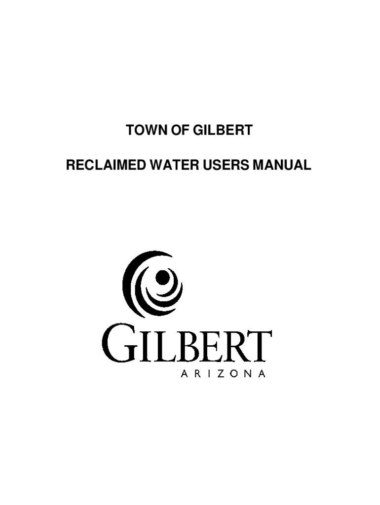TOWN OF GILBERT RECLAIMED WATER USERS MANUALAPPROVED BY TOWN COUNCIL August 1996 Updated March 24, 2011 & September 25, 2014, TABLE OF CONTENTSINTRODUCTION ............................................................................1