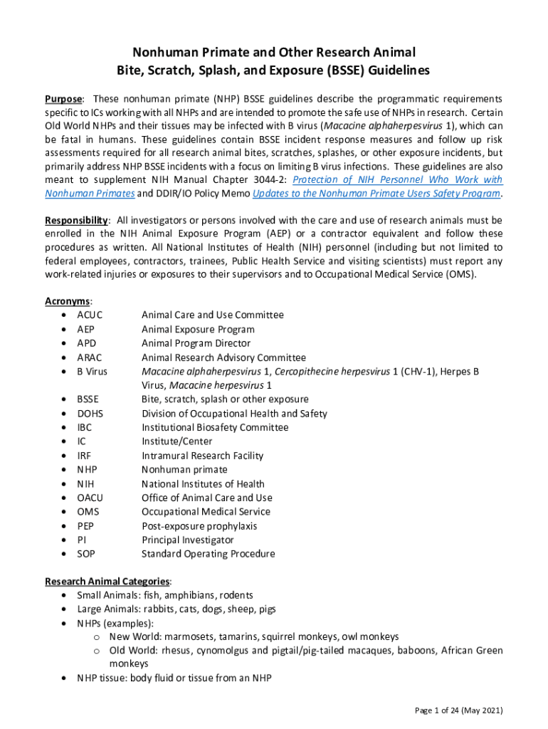 Get the free Nonhuman Primate and Other Research Animal Bite, Scratch ...