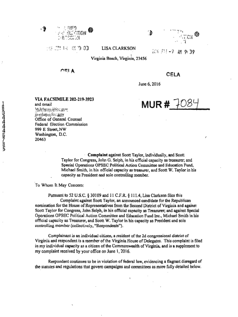 '1 J a: ':Ton M ;K::: '! Pro OB, :3f :.6LISACIARKSON Virginia Beach, Virginia, 23456fc: A CELL June 6.2016VIA FACSIMILE 2022193923 RNA If 'MUR # IOB 'i M Hi? Be ii11.) I. '0 V 'AJI irflaijia. L '(;i.UV