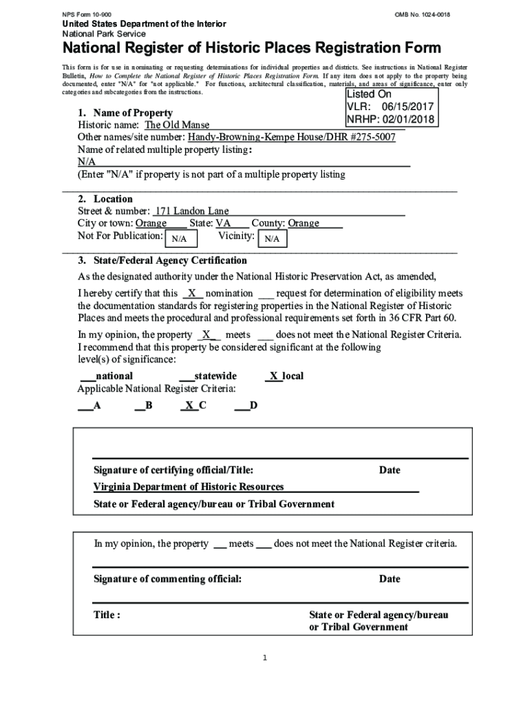 Get the free NPS Form 10-900OMB No. 1024-0018 United States ... - DHR