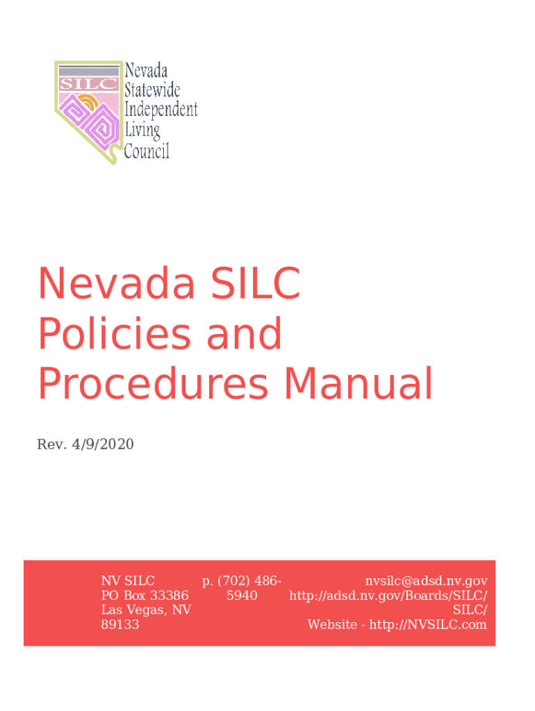 What is Nevada SILC Policies and Procedures Manual. Rev. 4/9/2020 Form?