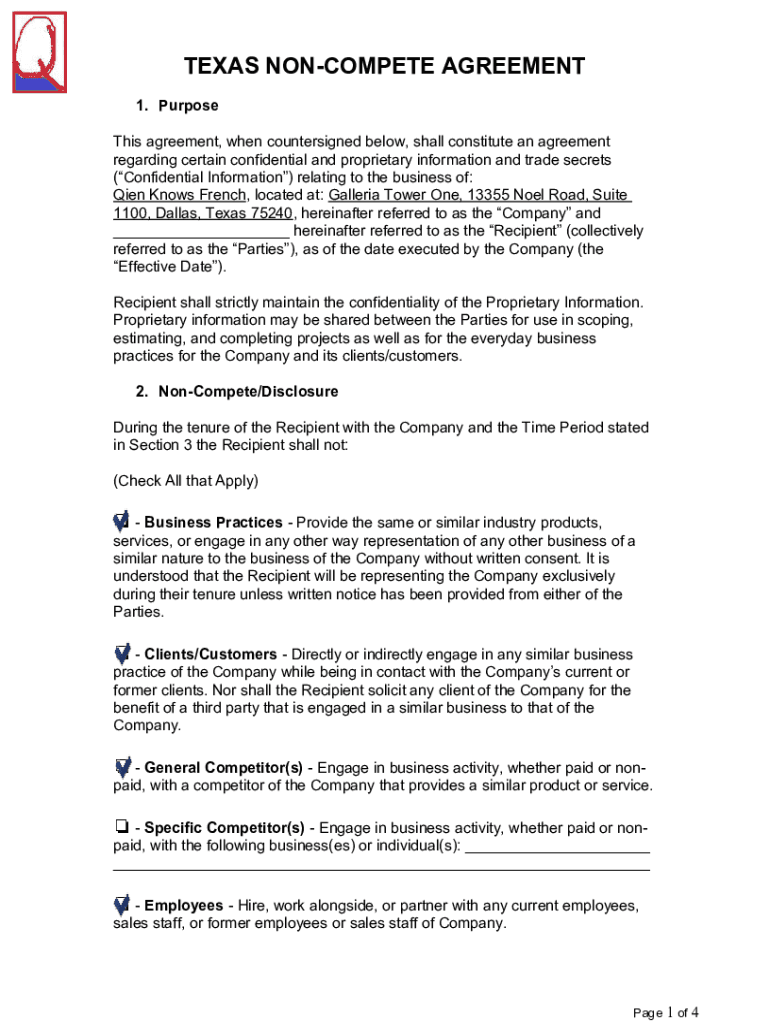 TEXAS COMPETE AGREEMENT 1. Purpose This agreement, when countersigned below, shall constitute an agreement regarding certain confidential and proprietary information and trade secrets (Confidential