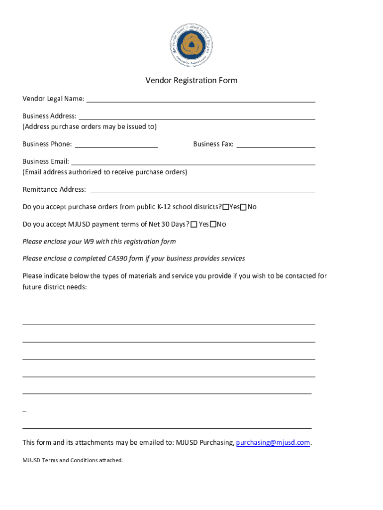 Vendor Registration Form Vendor Legal Name: Business Address: (Address purchase orders may be issued to) Business Phone: Business Fax: Business Email: (Email address authorized to receive purchase