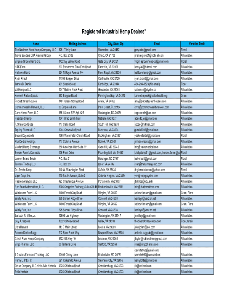 Get the free Registered Industrial Hemp Dealers*