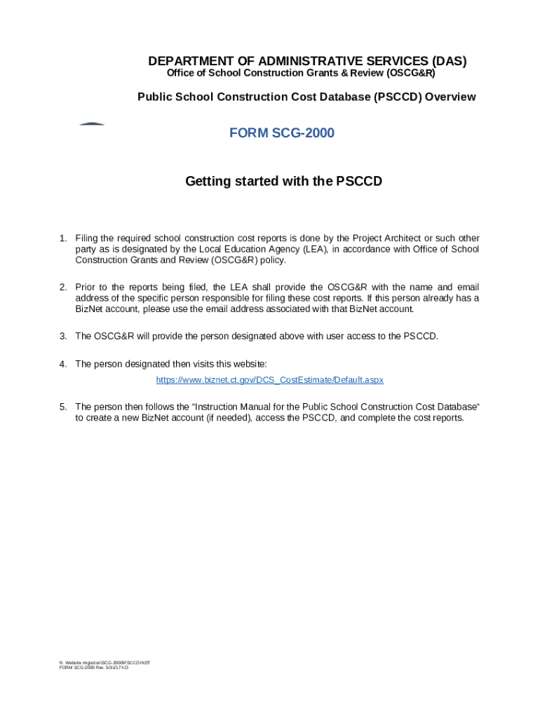 Instructions for the form SCG-2000 PSCCD overview