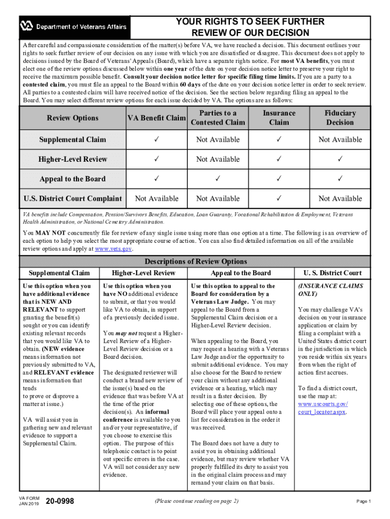 YOUR RIGHTS TO SEEK FURTHER REVIEW OF OUR DECISION After careful and compassionate consideration of the matter(s) before VA, we have reached a decision. This document outlines your rights to seek