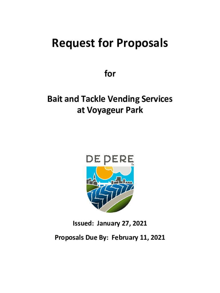 Request for Proposals for Bait and Tackle Vending Services at Voyageur Reissued: January 27, 2021, Proposals Due By: February 11, 2021A. Project Background The City of De Père is seeking proposals