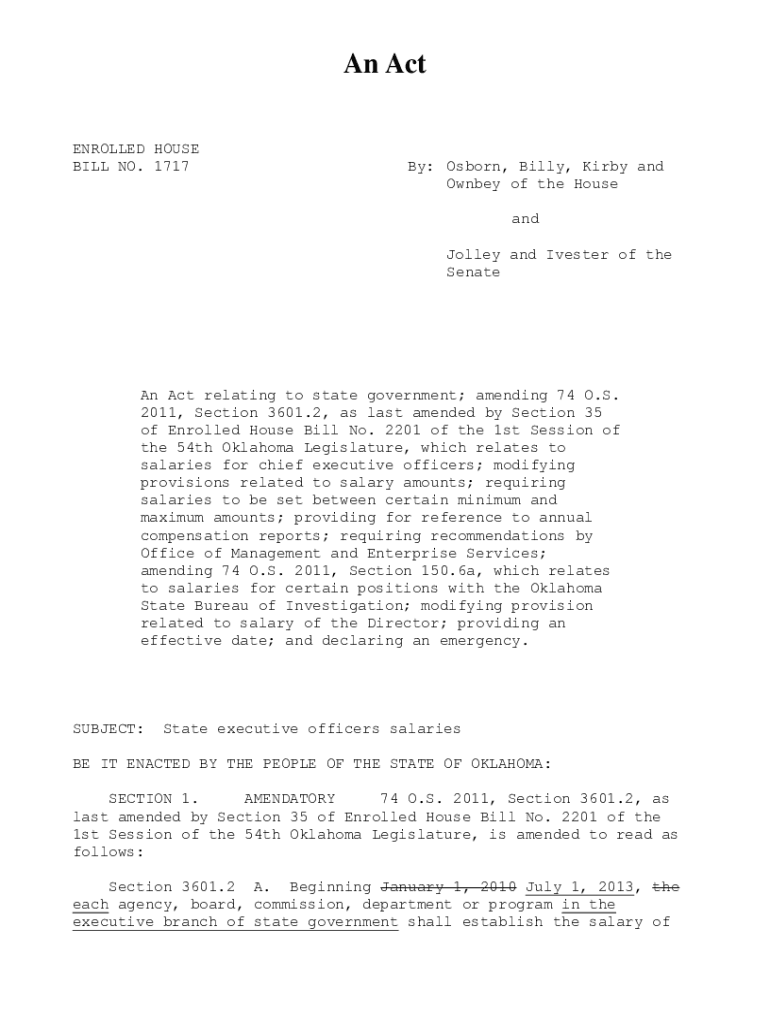 An Act ENROLLED HOUSE BILL NO. 1717By: Osborn, Billy, Kirby and Own bey of the House and Volley and Iv ester of the Senate Act relating to state government; amending 74 O.S. 2011, Section 3601.2,