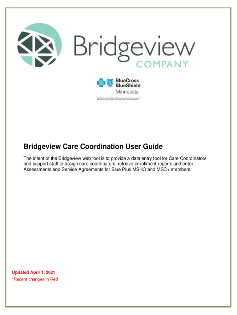 Bridge view Care Coordination User Guide The intent of the Bridge view web tool is to provide a data entry tool for Care Coordinators and support staff to assign care coordinators, retrieve enrollment
