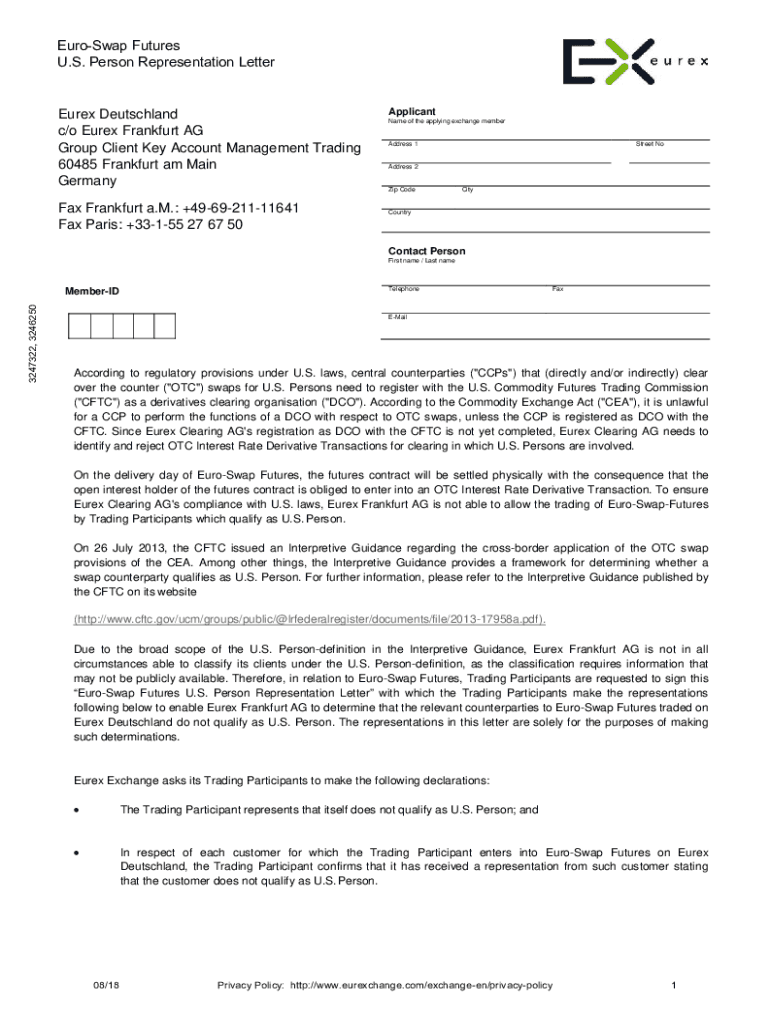 If you are planning to trade euro swap futures as a U.S. person or on behalf of a U.S. entity, you may need to provide this representation letter.